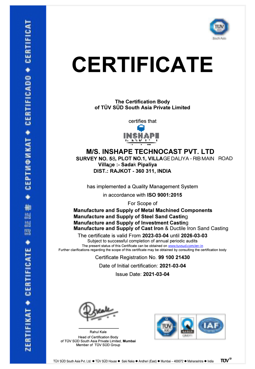 Approval of Workshop for Manufacturing of Lost Wax Investment Casting